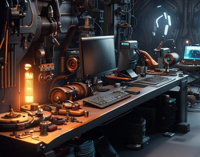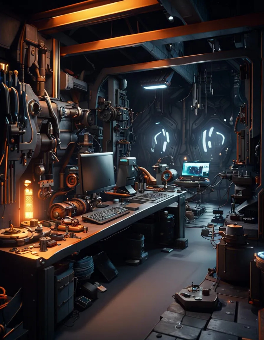 If the other main set of doors is open, then the view is into a counter area and behind it, the interior of a machine shop, some of which looks like modern machinery, and some of which will look decidedly futuristic to those from 21st century Earth. Here, machinery, from gears to electrical components, can be custom made for the client. Formerly known as the Dreamforge.